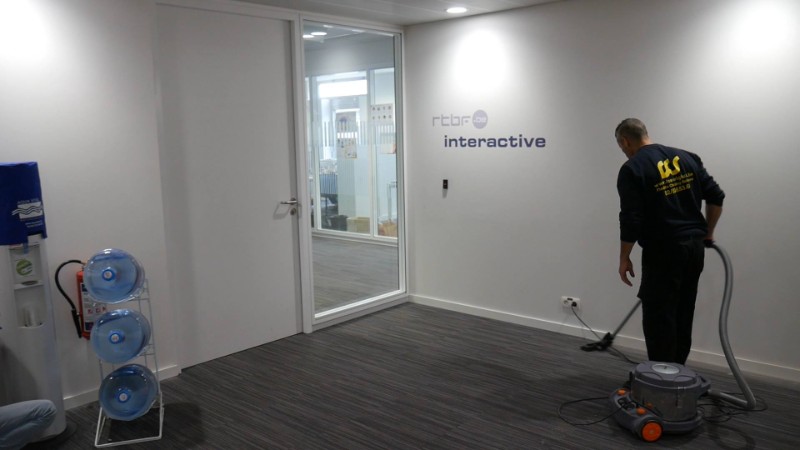 Nettoyage des locaux , sol et moquette de la RTBF Belgique - Partenariat Fcs & RTBF